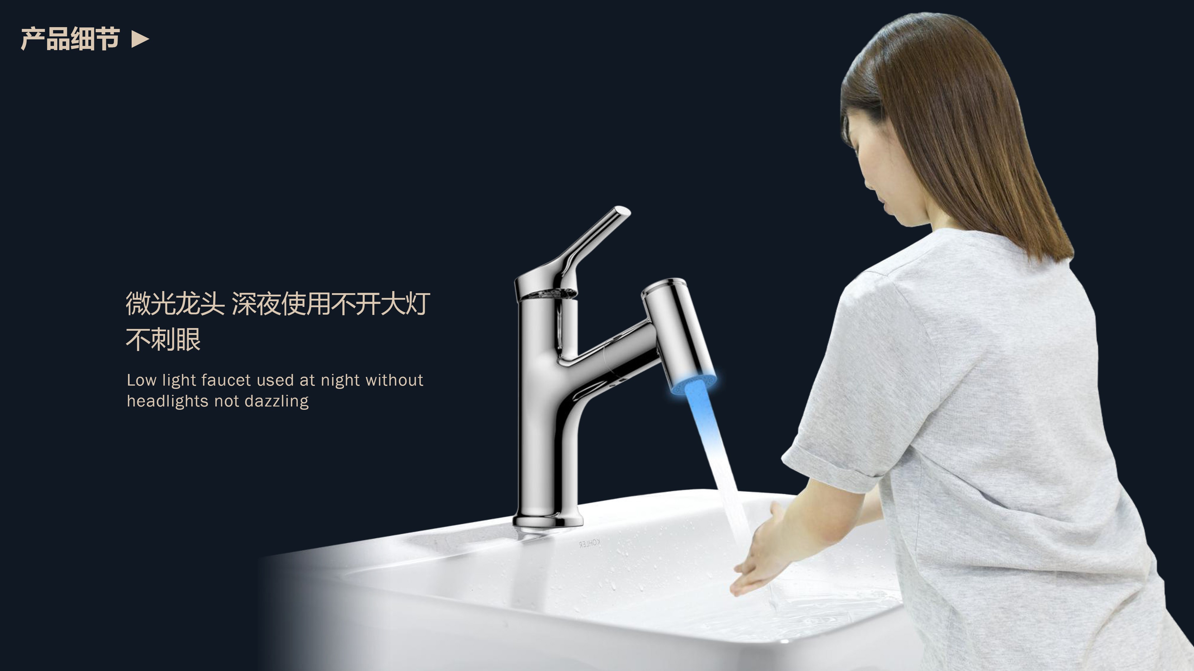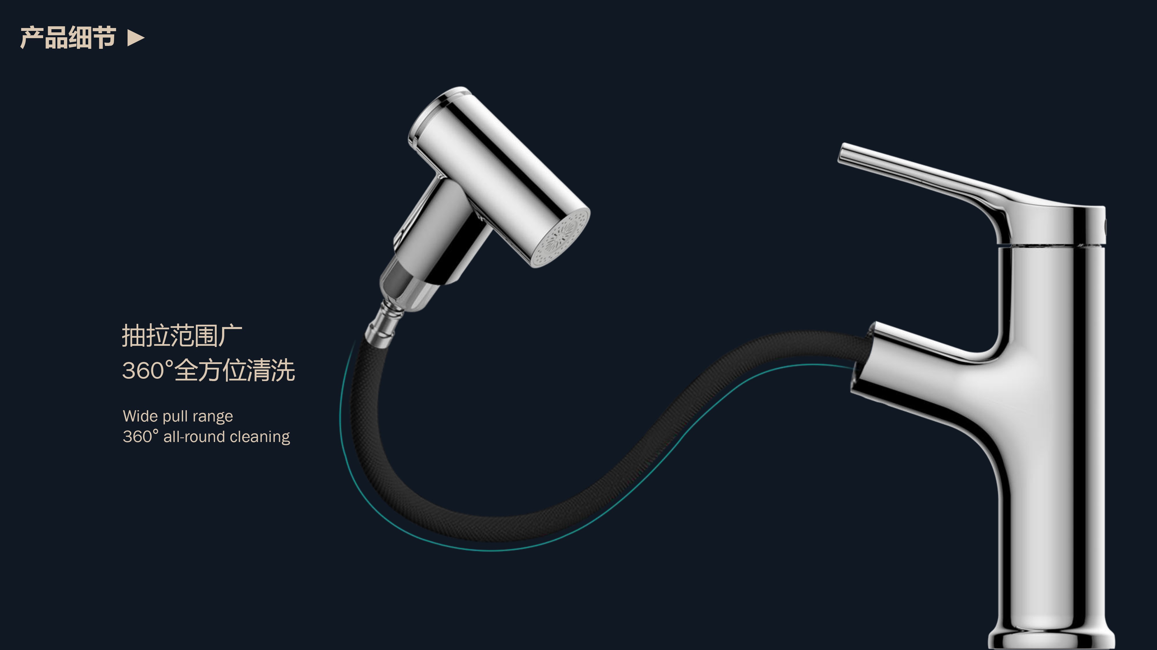 360°全方位抽拉清洗;微光龍頭,深夜使用不開大燈,不刺眼;日常洗頭利器,抽拉出水輕松洗;按壓切換兩功能水花;三種顏色LED燈光顯示水溫;重力錘復(fù)位設(shè)計(jì),順暢伸縮,精準(zhǔn)回位;無需工具,一推一擰10秒快裝
