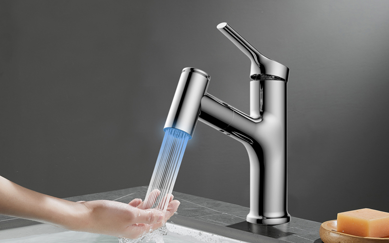 FB1322-C0 LED燈光顏色顯示水溫面盆抽拉龍頭