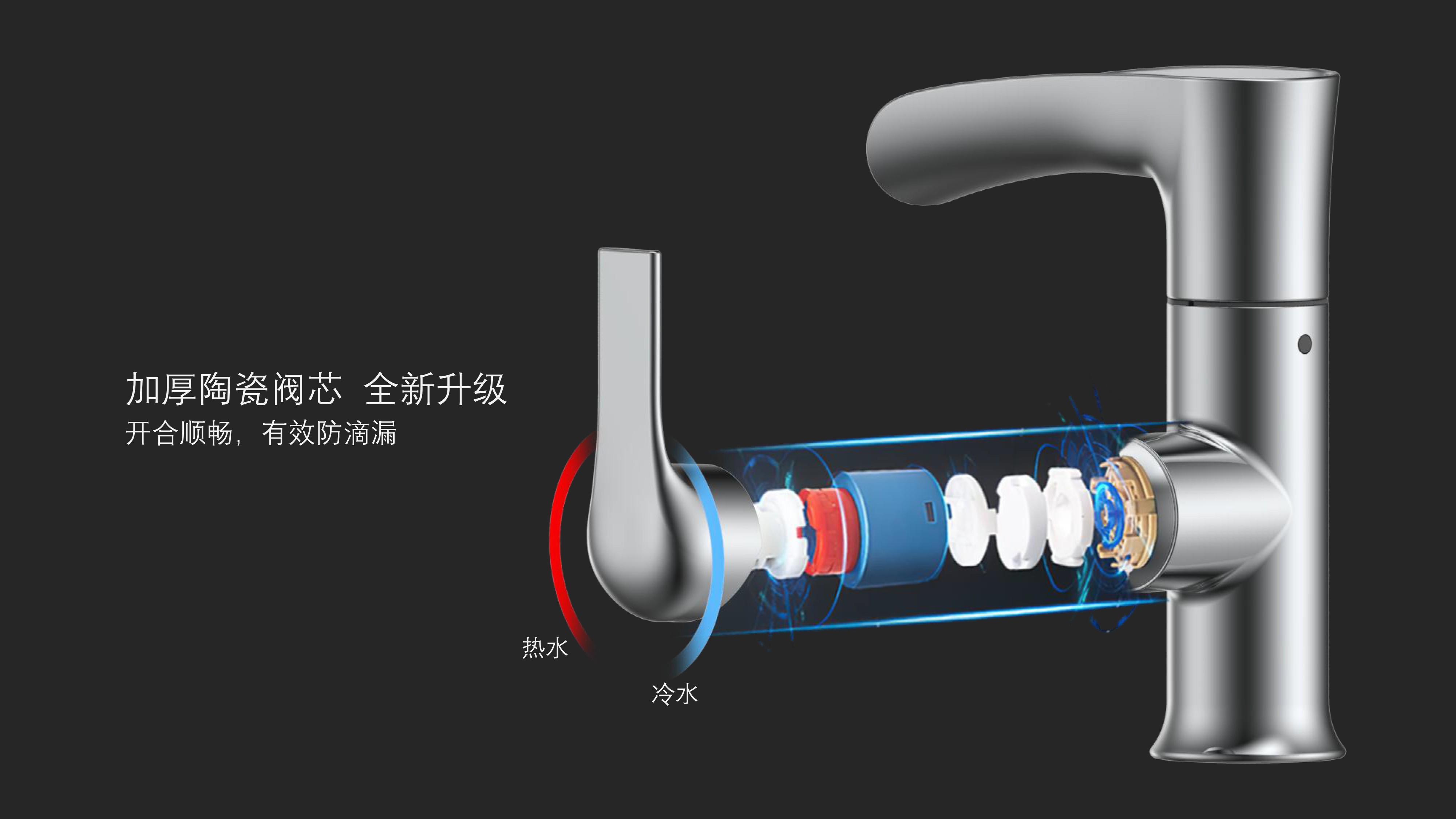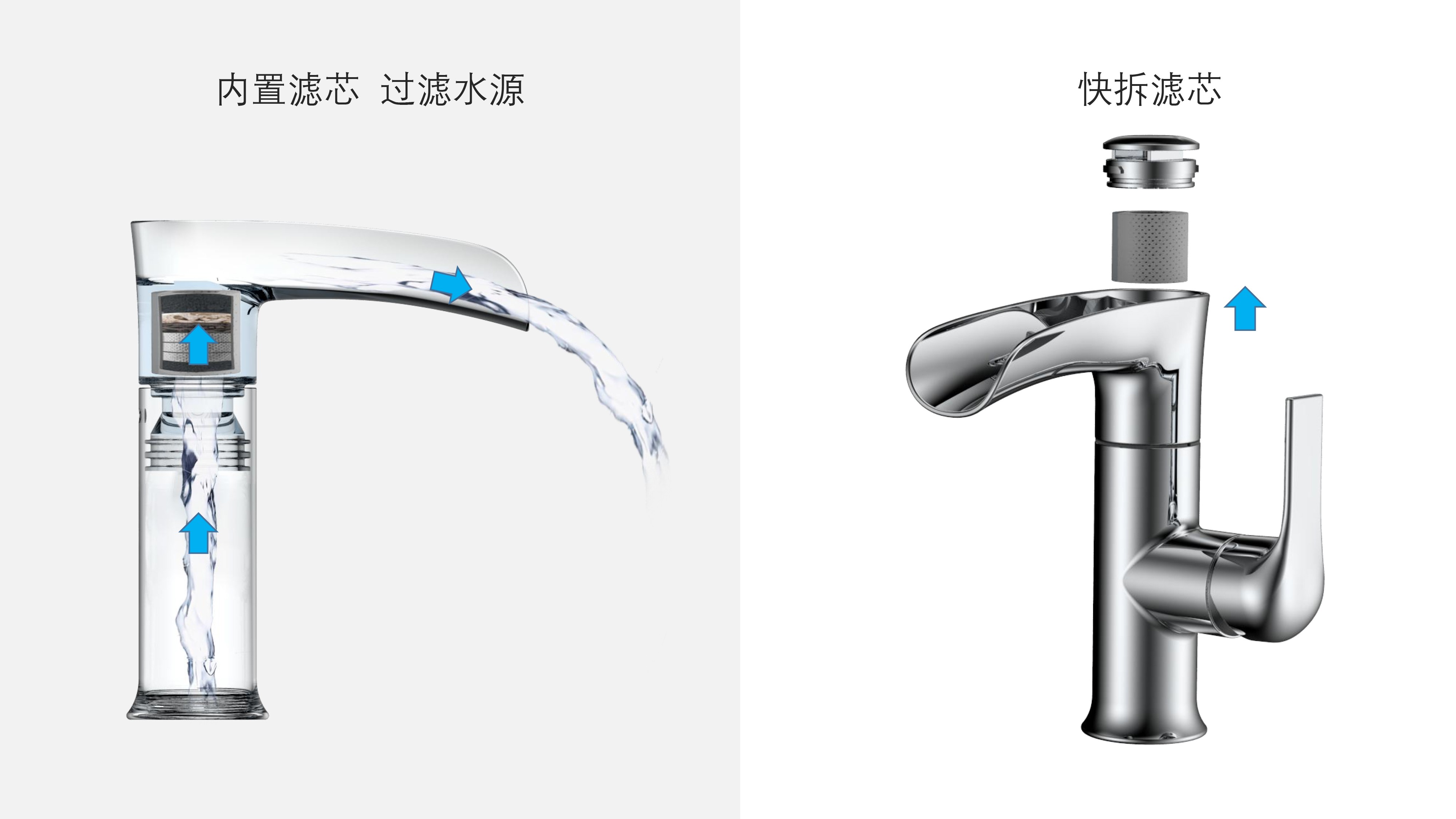 簡約時(shí)尚設(shè)計(jì);加厚陶瓷閥芯開合順暢,有效防滴漏;內(nèi)置快拆可更換過濾濾芯;